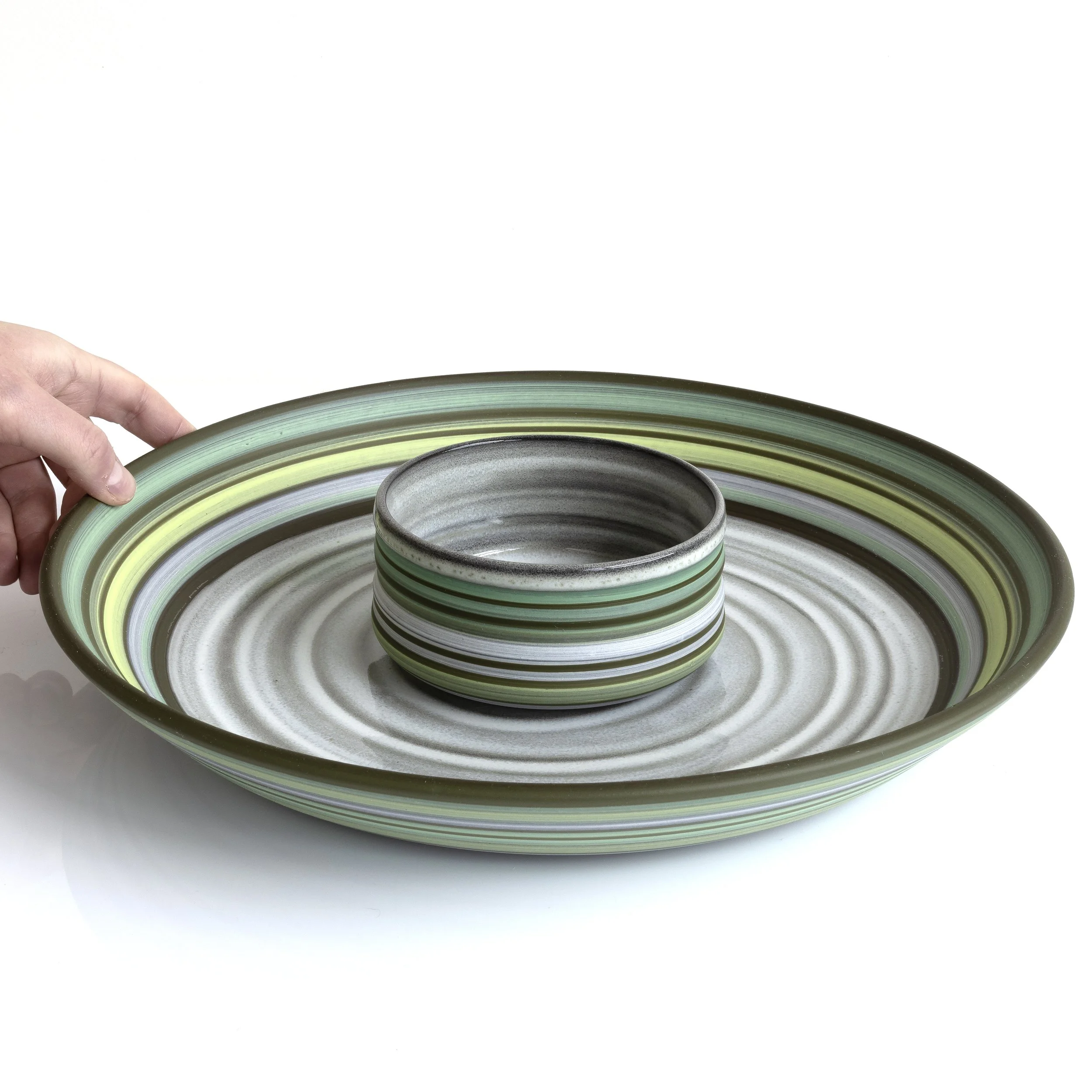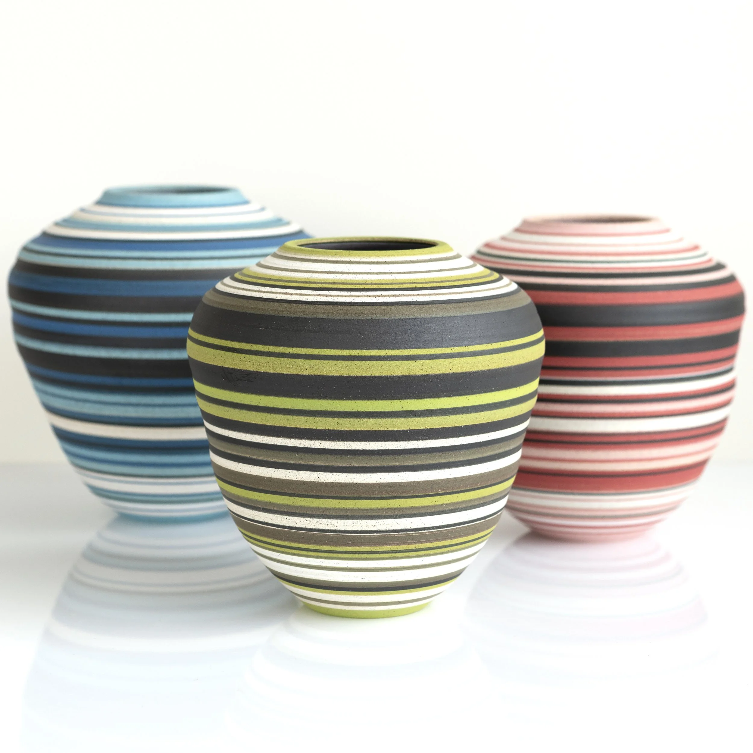My ceramics blend form and technique, with each piece carefully handcrafted and featuring graceful curves that invite exploration. I use the traditional technique of terra sigillata, adding detailed stripes that highlight the shapes. The firing process in both gas or electric kilns adds unique colours and textures, creating a dynamic interaction between material and fire. This process connects my work to the rich history of pottery.